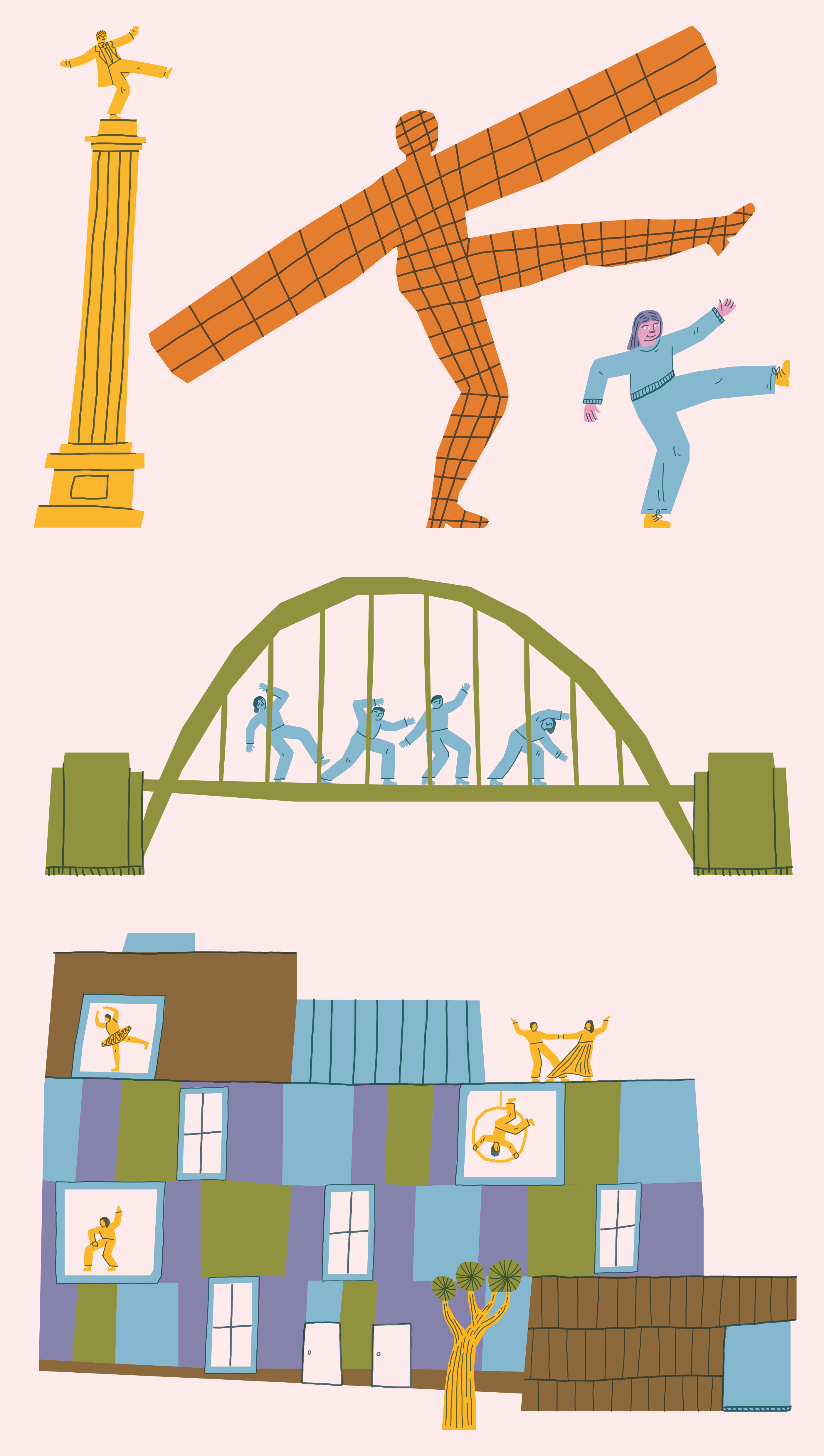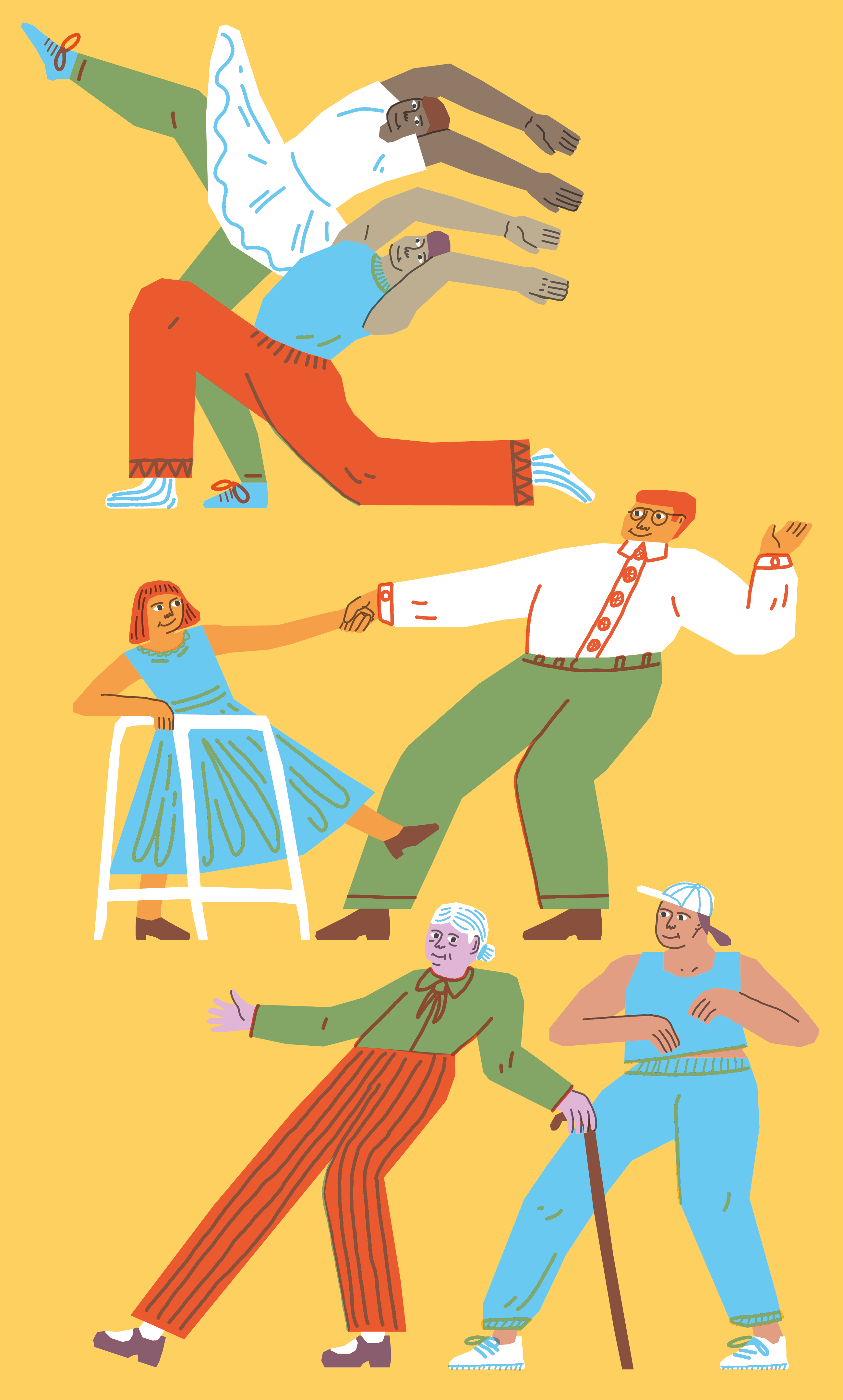 Cover illustrations consecutive issue of Dance City’s ‘Get Into Dance’ magazine, advertising their performances and public class programme.