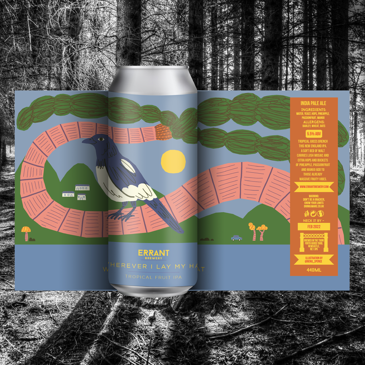 A Tropical IPA label designed for Errant Brewery, an independent brewery based in Newcastle Upon Tyne.